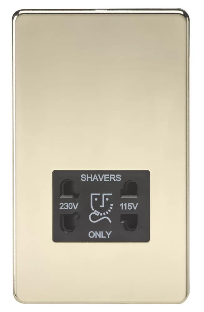 Screwless, flat plate, design dual voltage shaver socket. Ideal for bathroom upgrades.
