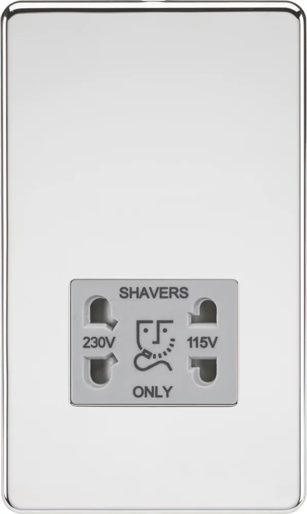 Screwless, flat plate, design dual voltage shaver socket. Ideal for bathroom upgrades.