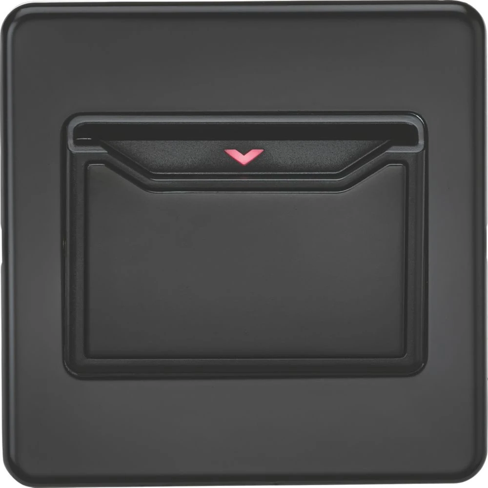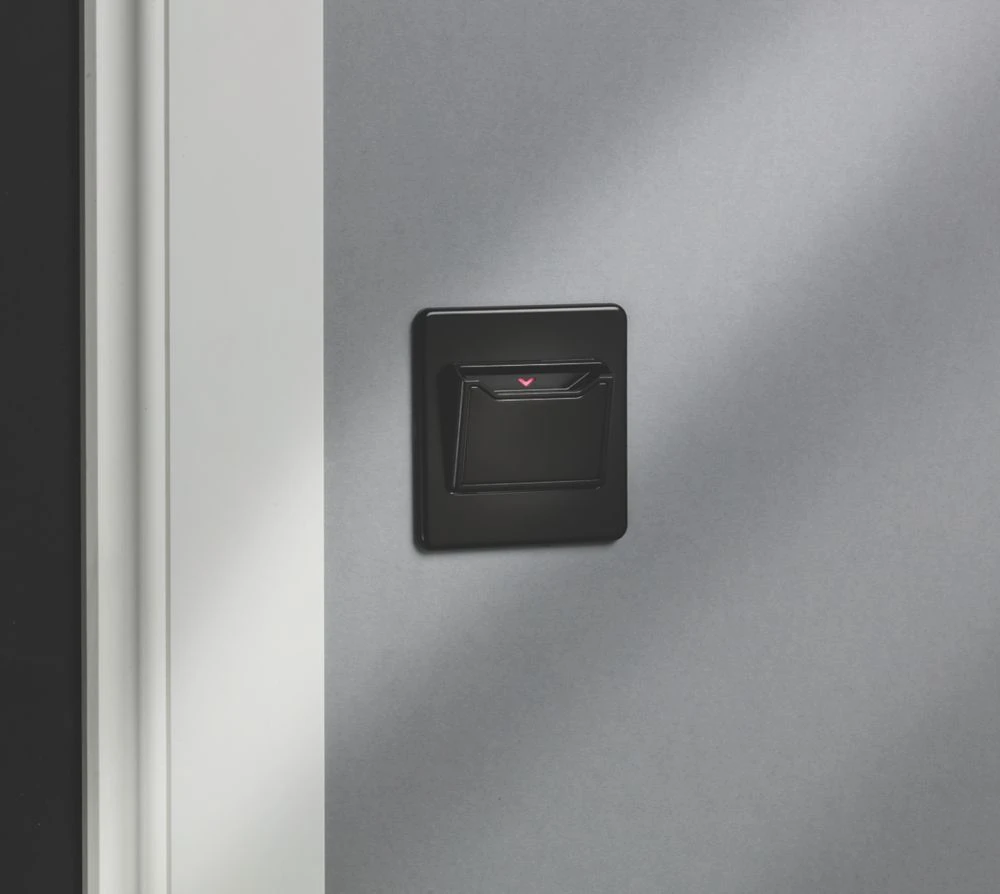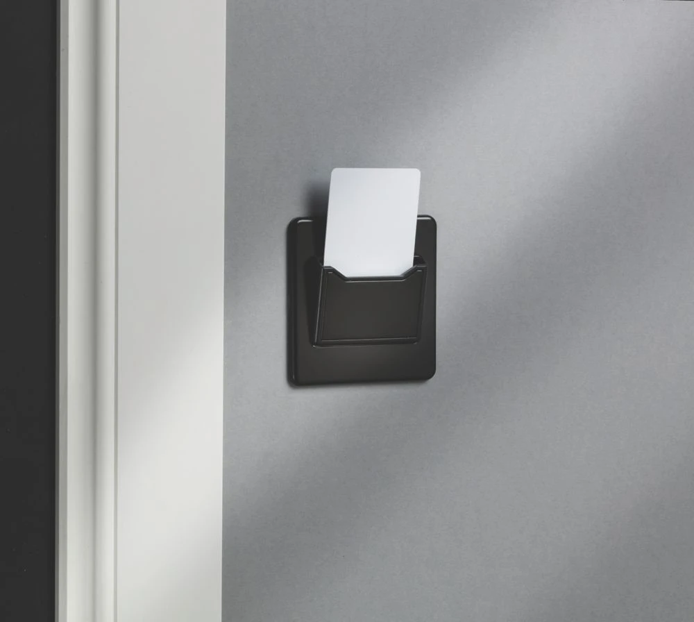 Screwless, low profile design with built in gasket. Ideal for activating power and lighting in hotel rooms via the room key-card. Power to the room is cut 30 seconds after withdrawal of the key-card. Features back-lit arrow to aid activation in dark rooms.