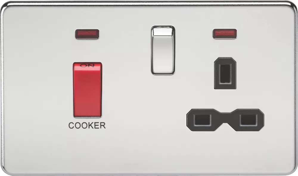 Polished chrome CCU and switched socket with LED indicator and built in gasket. Control 2 or more cooking appliances in the same room, providing rating is sufficient.