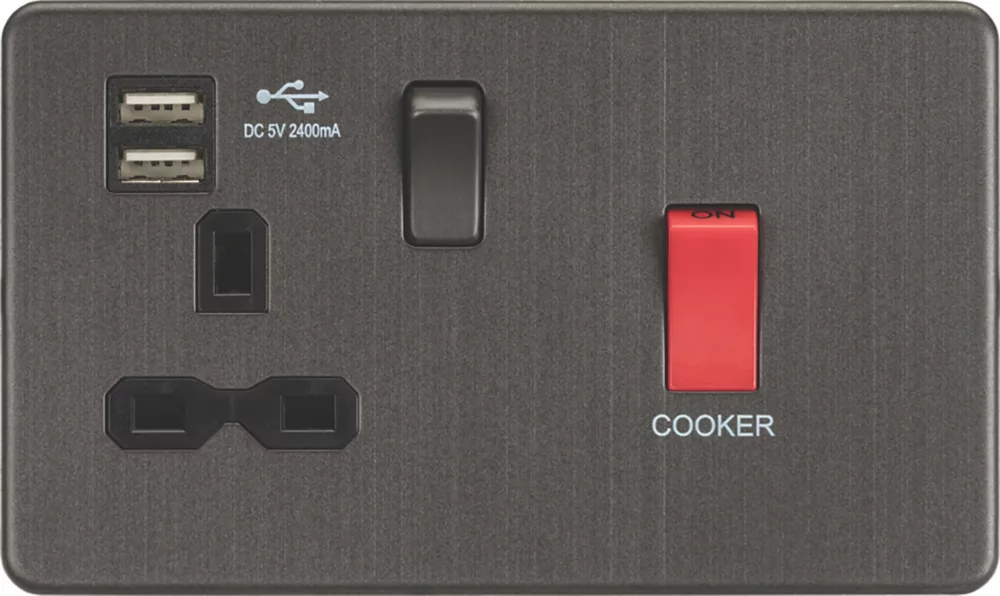 Screwless, flat profile design, 45A control switch combined with a 13A socket, 2 USB ports and built-in gasket. Allows control of 2 or more cooking appliances providing rating is sufficient, and enables isolation of the unit for maintenance and repairs.
