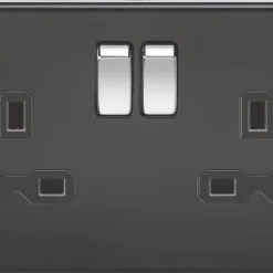 British General Nexus Metal 13A 1-Gang DP Switched Plug Socket Brushed Iridium With Black Inserts