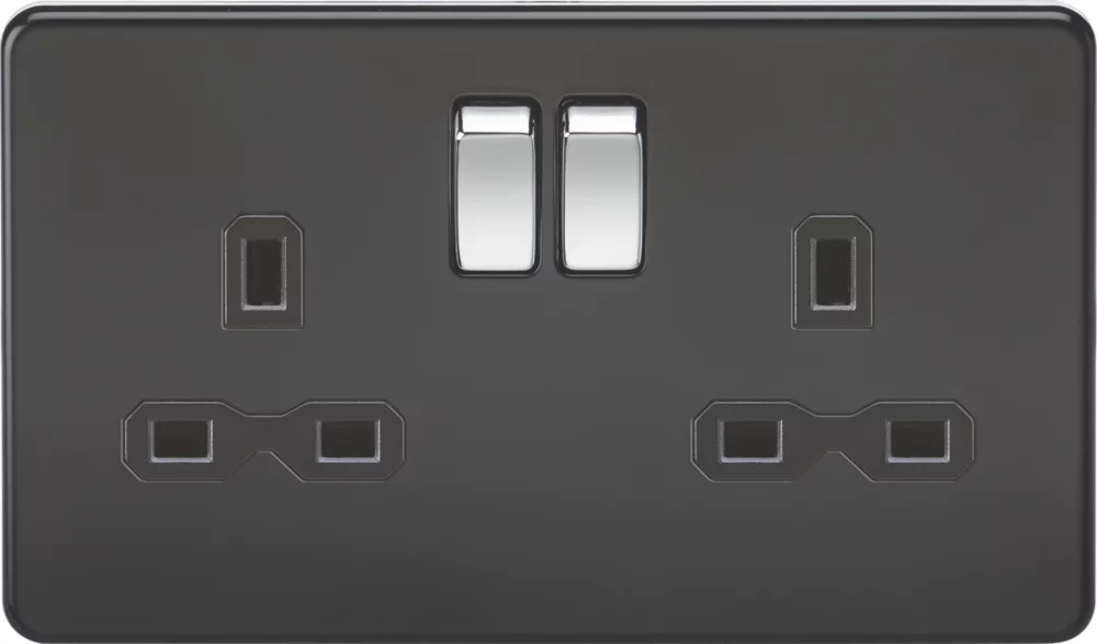 Schneider Electric Lisse Deco 13A 1-Gang SP Switched Plug Socket Polished Chrome With Black Inserts