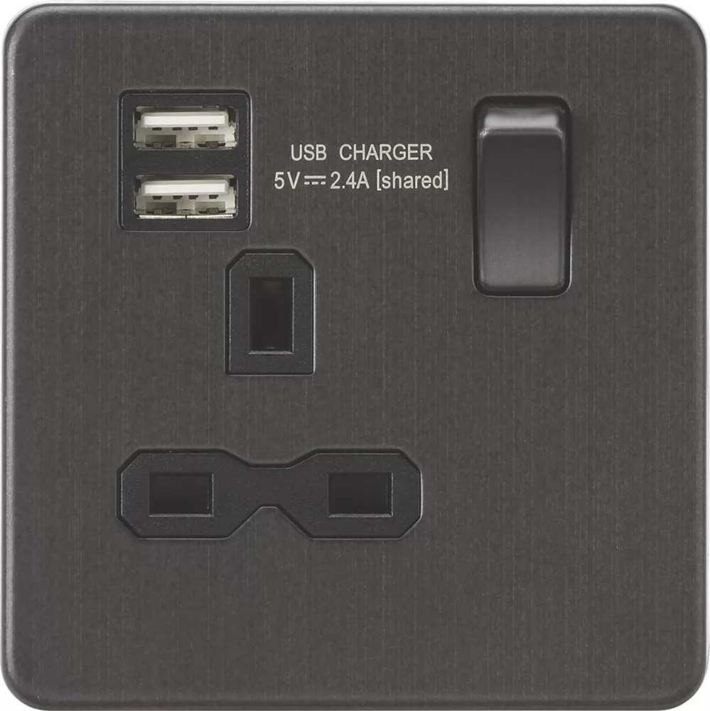 British General Nexus Metal 13A 1-Gang DP Switched Plug Socket Brushed Iridium With Black Inserts