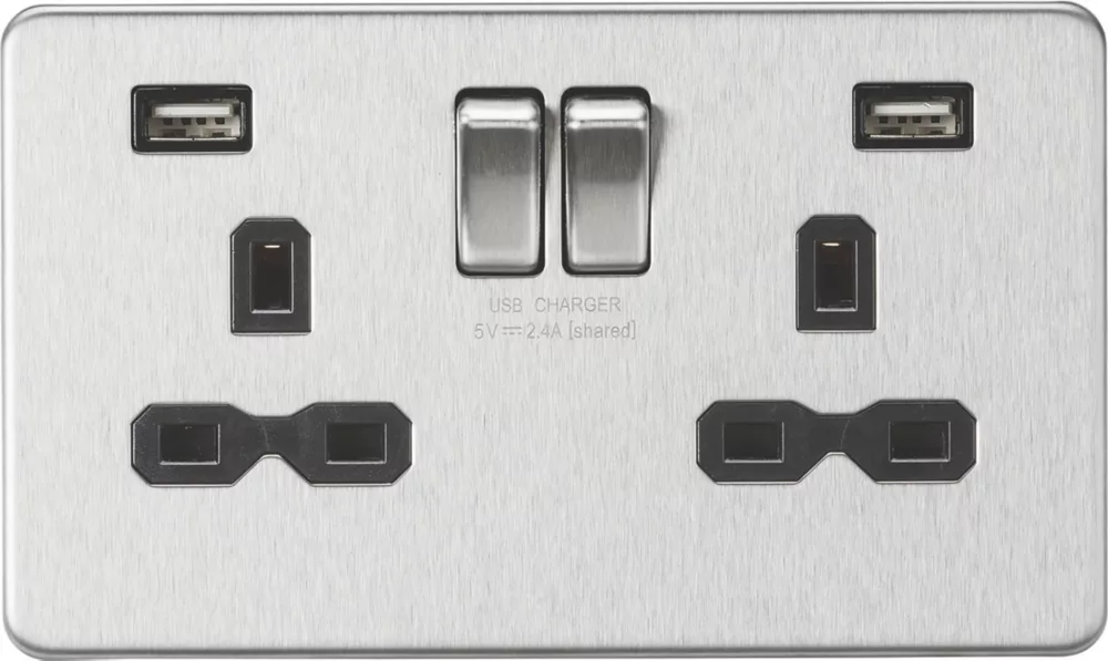 LAP 13A 2-Gang SP Switched Socket + 3.1A 2-Outlet Type A USB Charger Black Nickel With Black Inserts