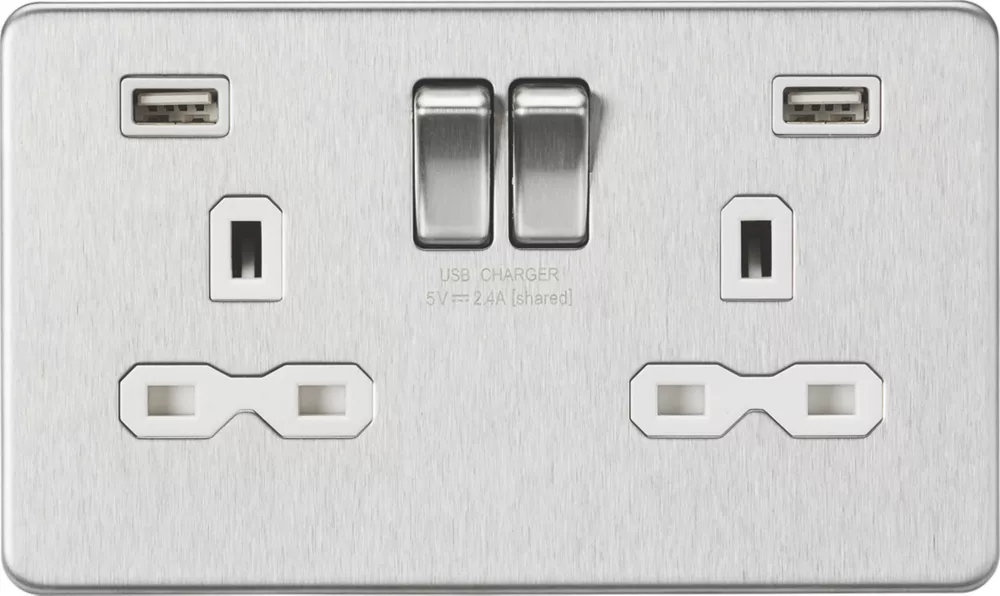 Low profile metal design with matching metal rockers. Built-in dual USB charger.