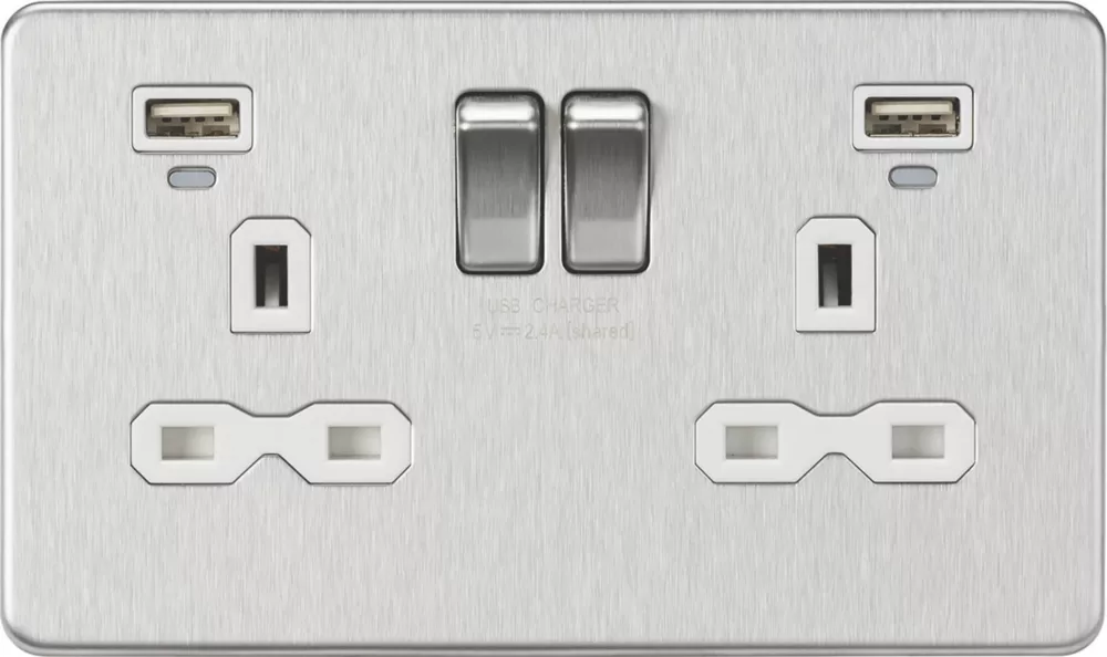 MK Base 13A 1-Gang DP Switched Socket + 2.4A 1-Outlet Type A USB Charger White With White Inserts
