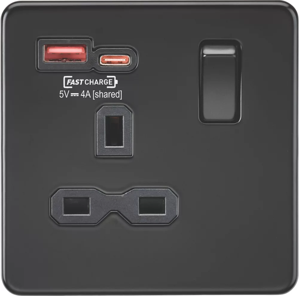 LAP 13A 2-Gang SP Switched Socket + 3.1A 2-Outlet Type A USB Charger Black Nickel With Black Inserts