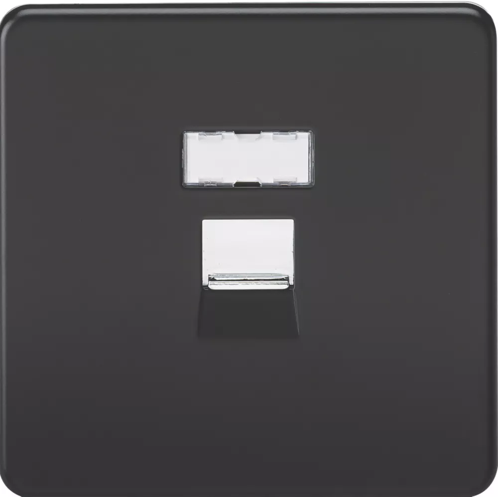 Screwless, low profile design socket with IDC terminals (tool included). Built-in gasket. Ideal for creating wired networking points around the home. Supplied with write-on designation label.