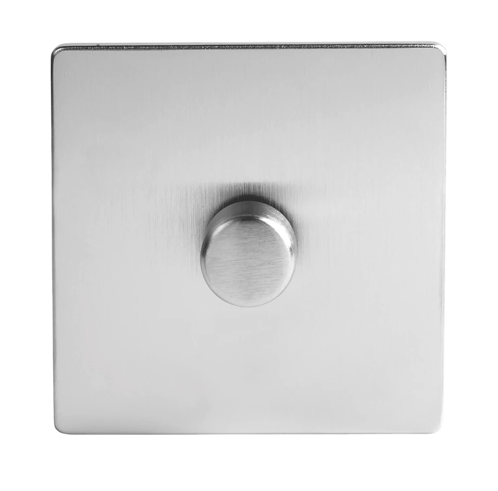 Clip-on front plate with cutting edge design for mains and low voltage dimmer switches.