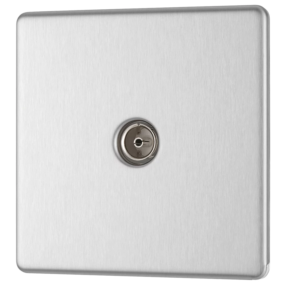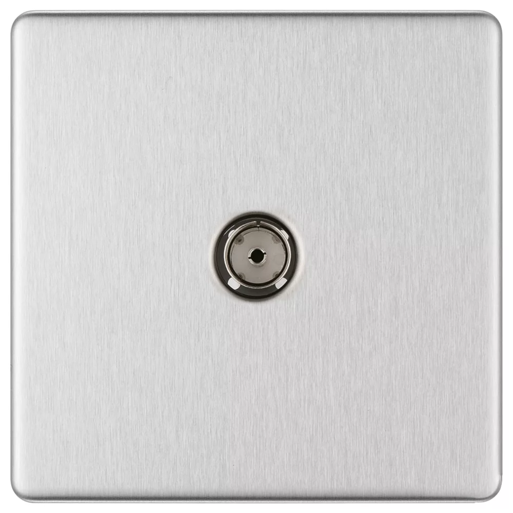 Coaxial TV socket with decorative, screwless flat-plate. Slim, clip-on profile to complement any interior decor.