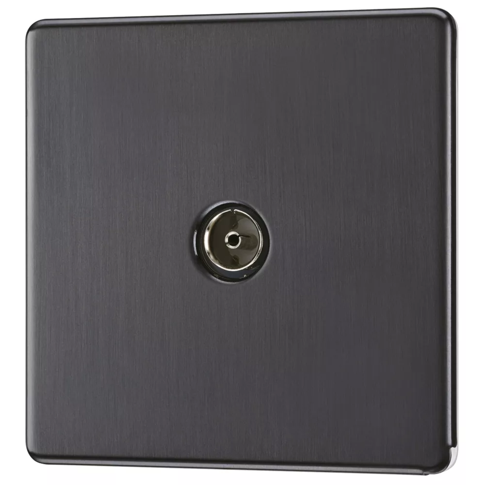 British General Nexus Metal 13A 1-Gang DP Switched Plug Socket Brushed Iridium With Black Inserts