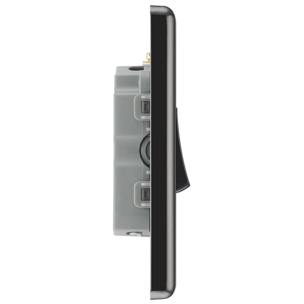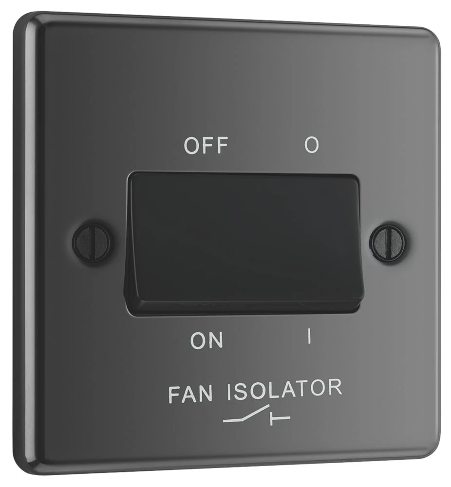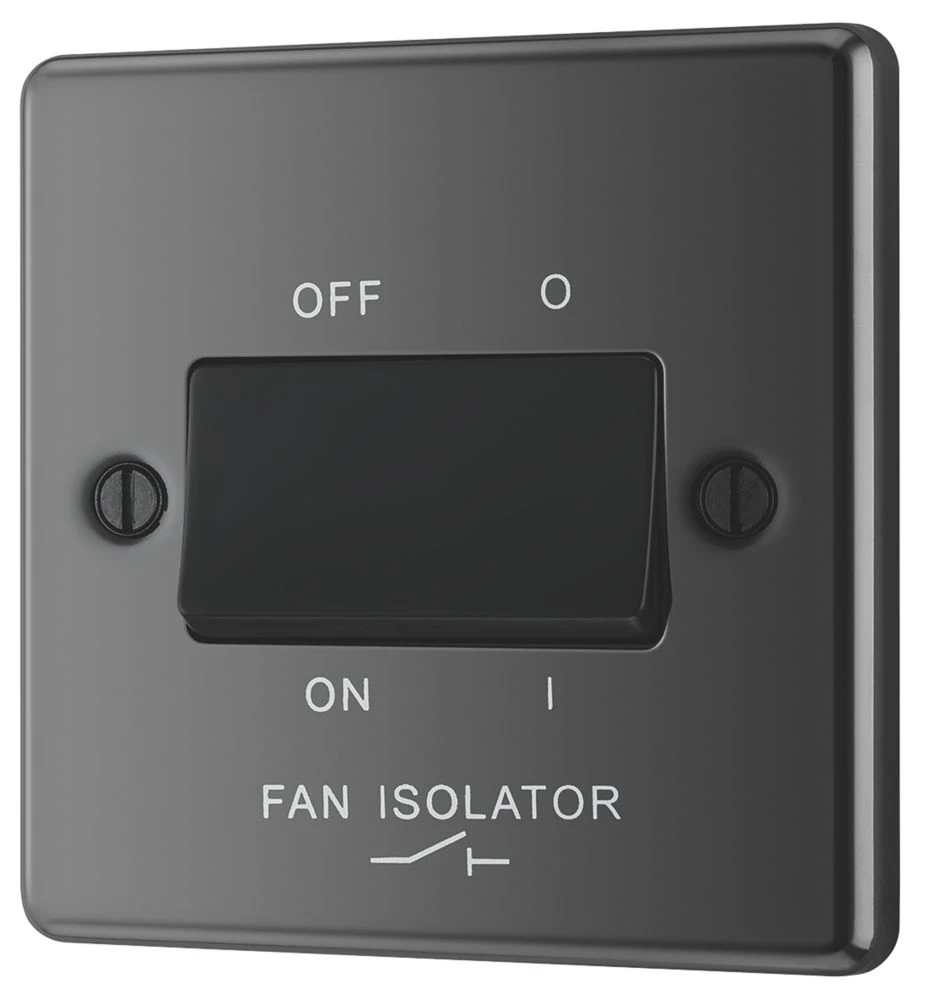 Black nickel 3-pole fan isolator with black insert, integral moisture protection gasket.