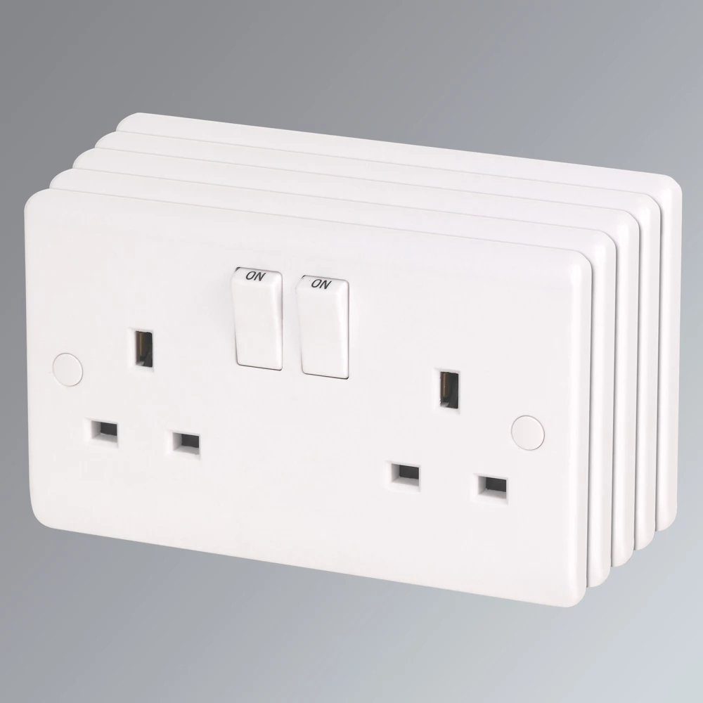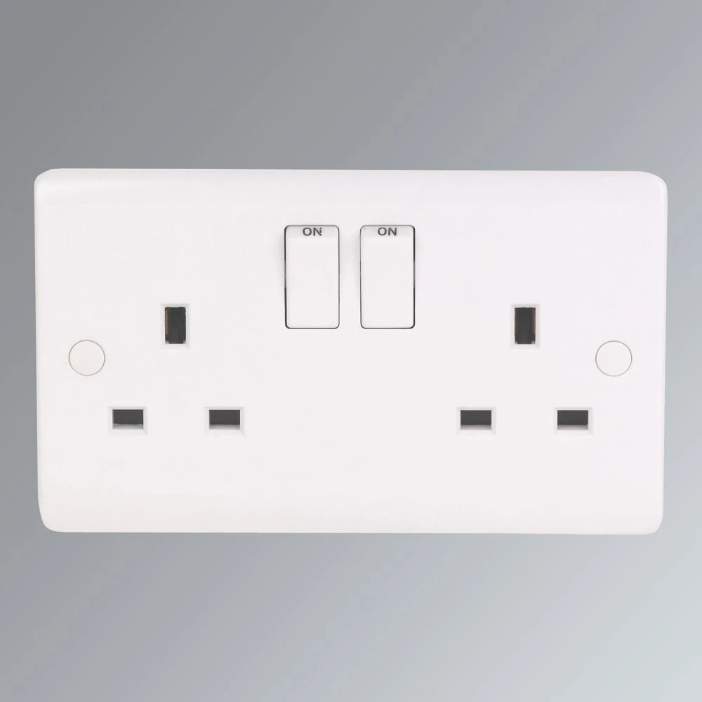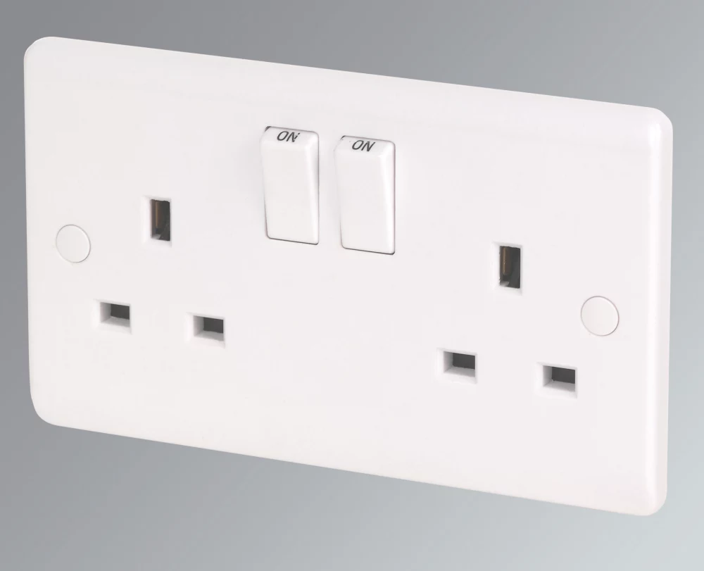 This stylish, double pole switched socket with twin earth from LAP combines great engineering with an elegant, slimline design and concealed screw covers for improved aesthetics.