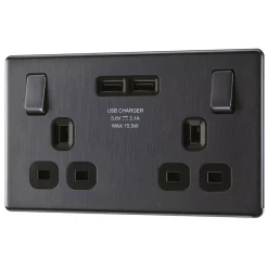 Easy to install, switched socket with USB charger. Decorative, screwless flat-plate and slim, clip-on profile. Supplied with 10mm spacer for fitting into a 25mm box. Ideal for redecoration projects.