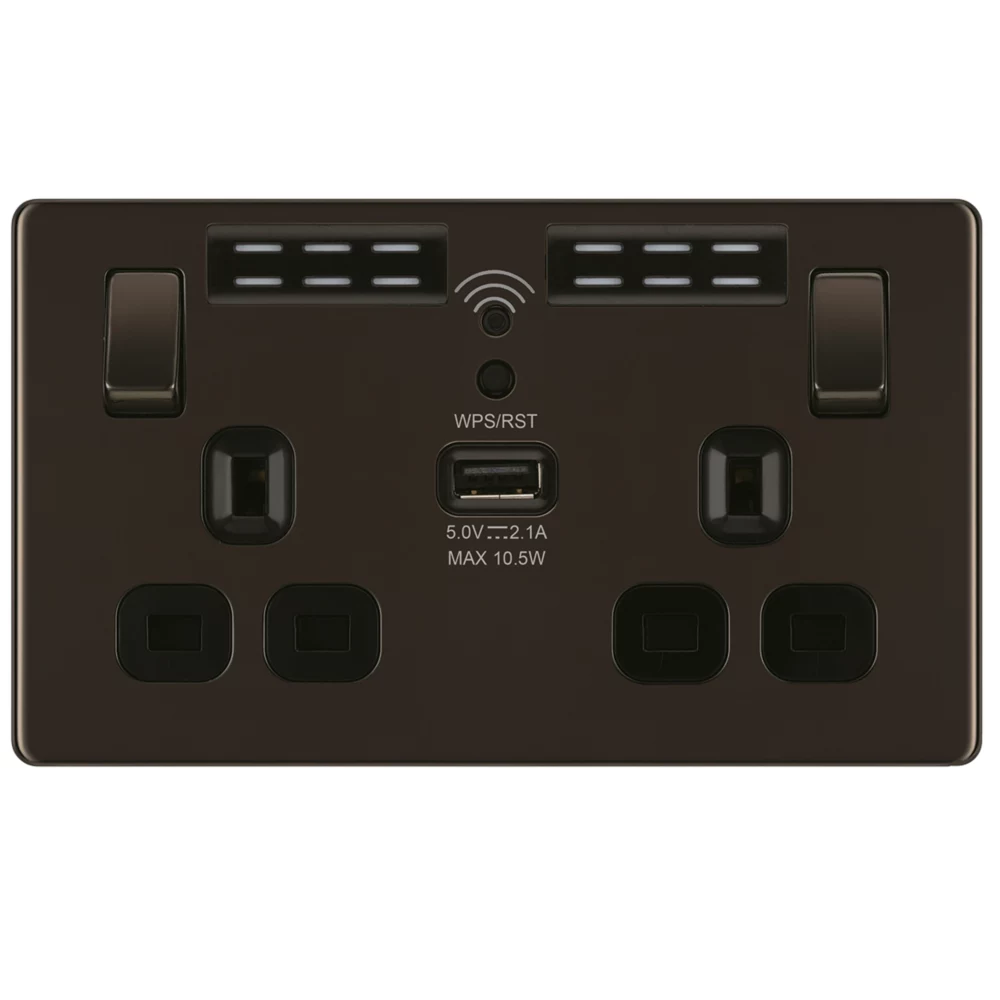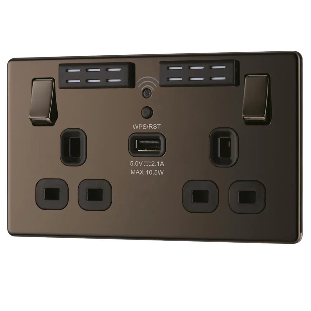Eliminates dead spots and expands Wi-Fi coverage. Removable, decorative screwless flat-plate. Slim, clip-on profile to complement any interior decor. Ideal for redecoration projects.