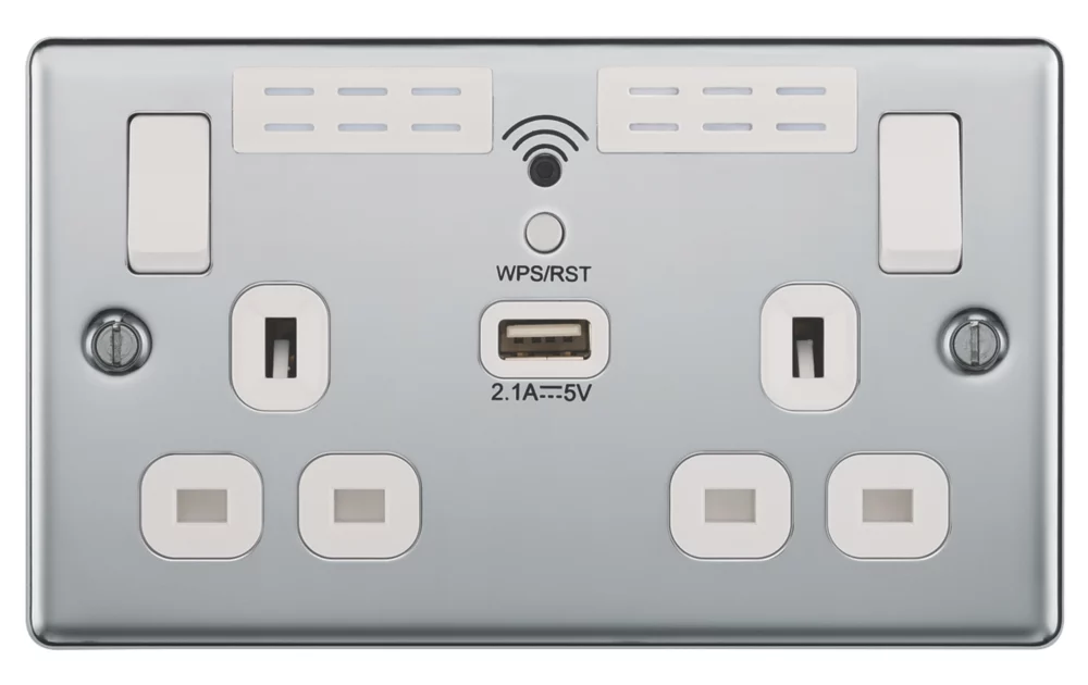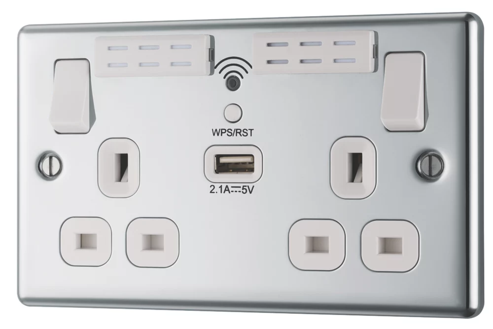 Improves Wi-Fi coverage throughout the home from a wall socket. Quick and easy to install with one-touch WPS. Ideal for streaming music, videos or online gaming. No plug-in adaptors so sockets are kept free. Includes USB charging socket, ideal for phones and tablets.
