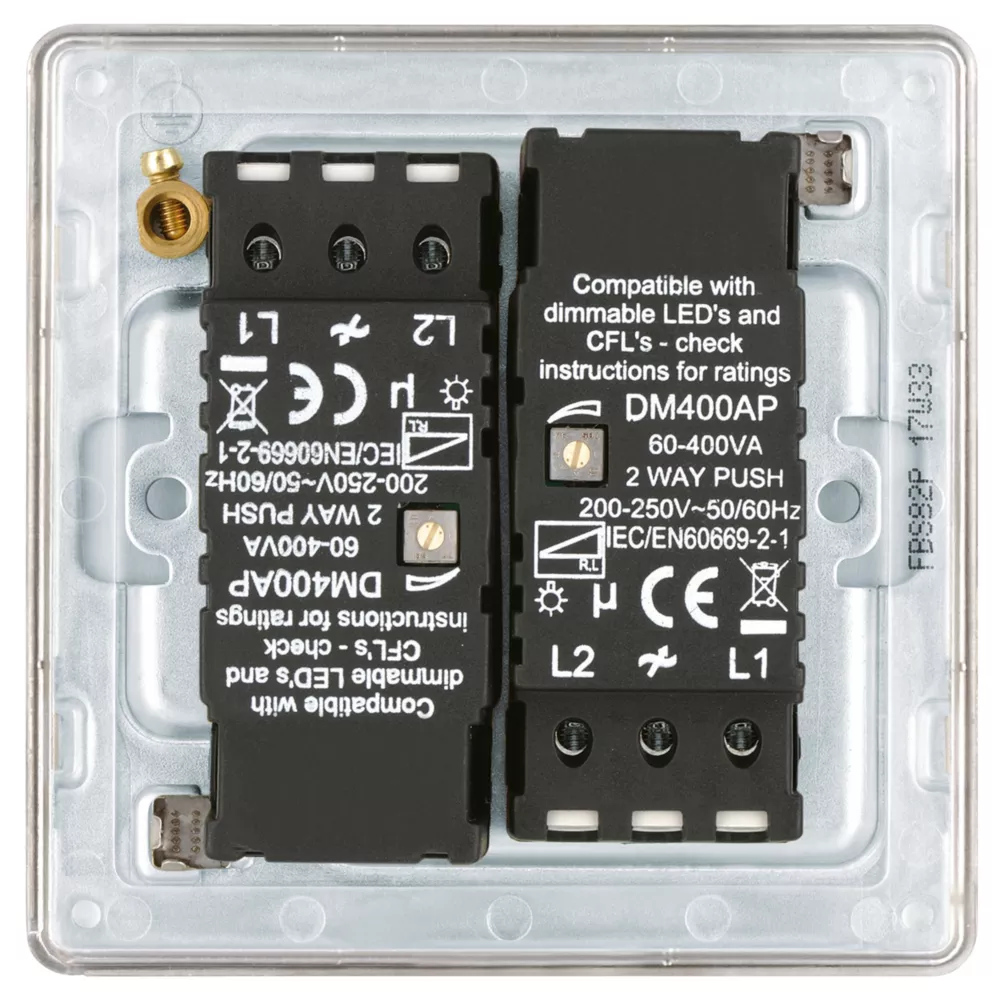 Decorative, screwless flat-plate. Slim, clip-on profile to complement any interior decor. Suitable for use with dimmable LED lighting. Ideal for saving energy or as mood lighting.