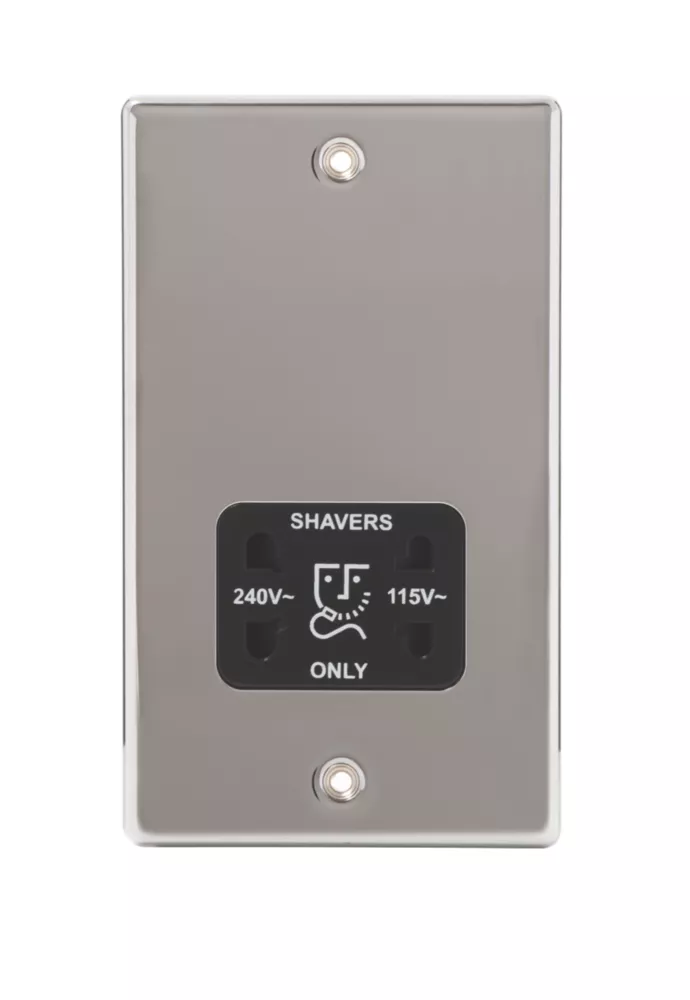 Polished chrome shaver socket with black insert and integral moisture protection gasket.