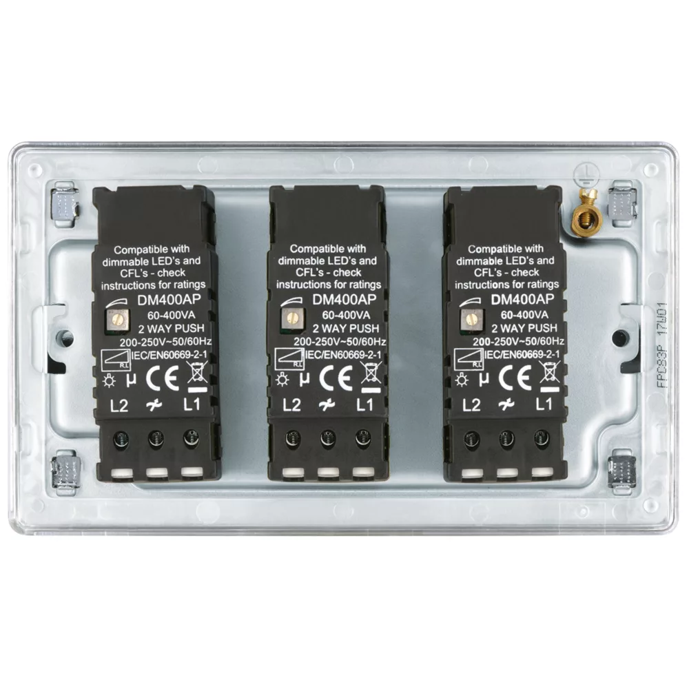 Decorative, screwless flat-plate. Slim, clip-on profile to complement any interior decor. Suitable for use with dimmable LED lighting. Ideal for saving energy or as mood lighting.