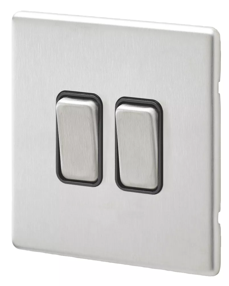Contemporary switch with slim profile. Upward facing terminals with backed-out and captive screws for easy installation.