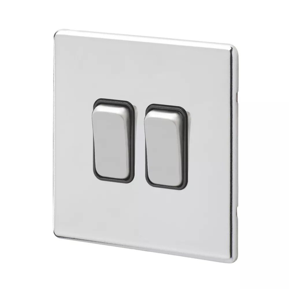 MK Edge 2-Gang Dual Voltage Shaver Socket 115 / 230V Brushed Stainless Steel With Black Inserts