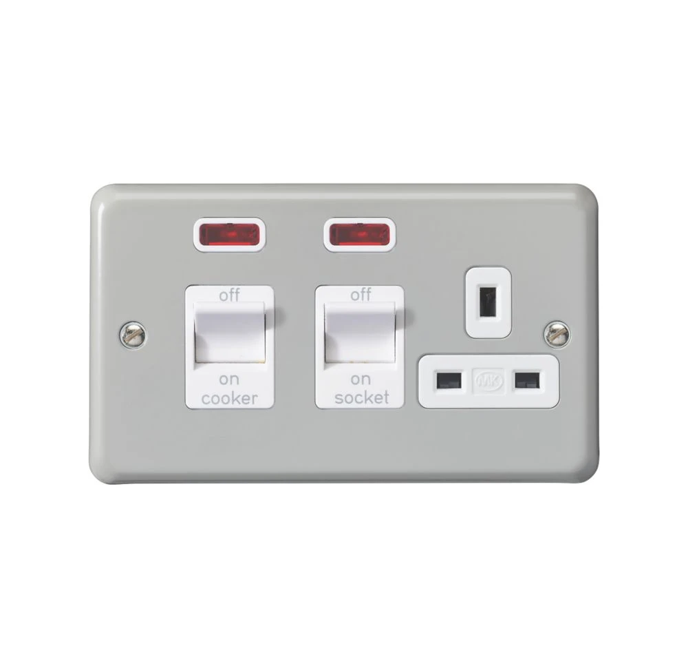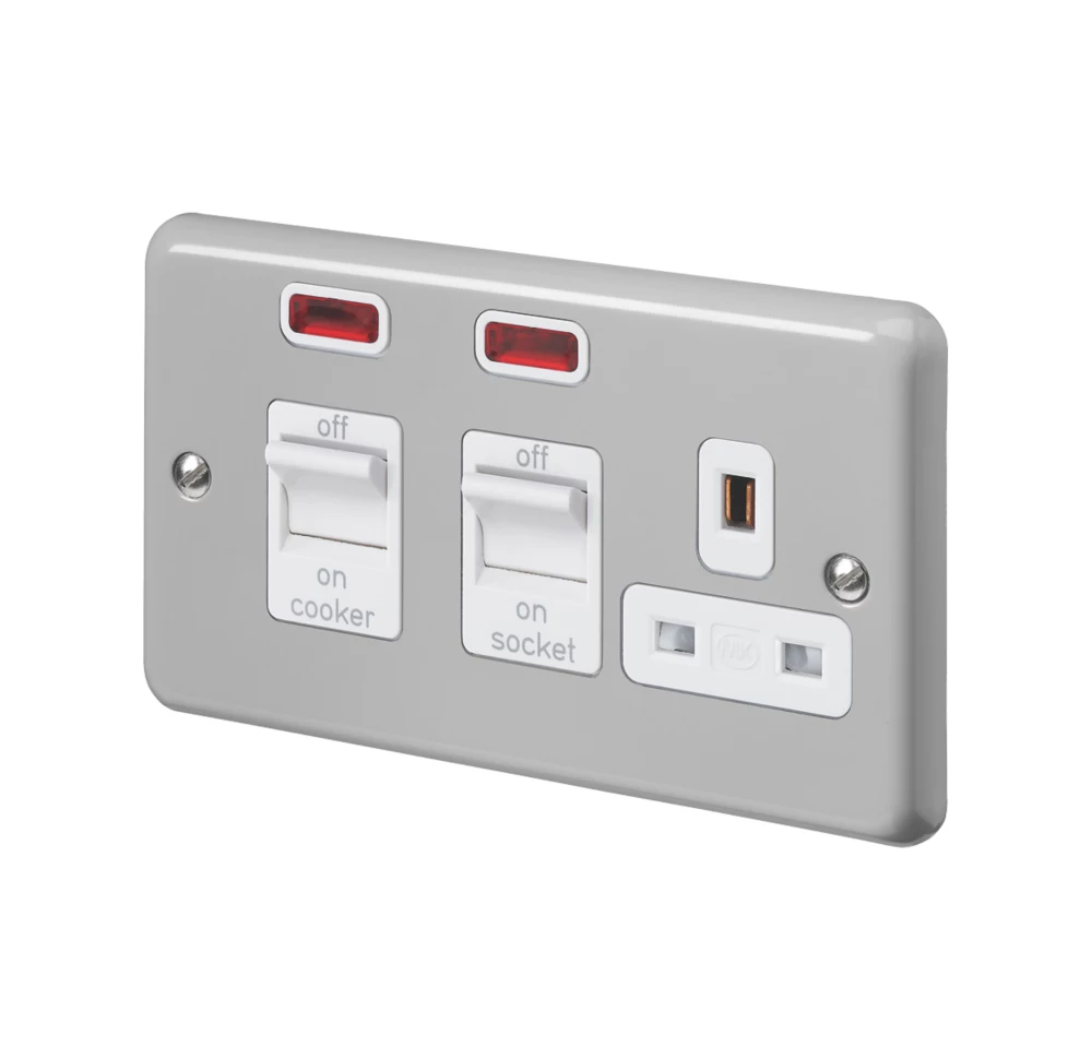 MK Contoura 13A 1-Gang DP Switched Socket + 2A 2-Outlet Type A USB Charger Grey With White Inserts