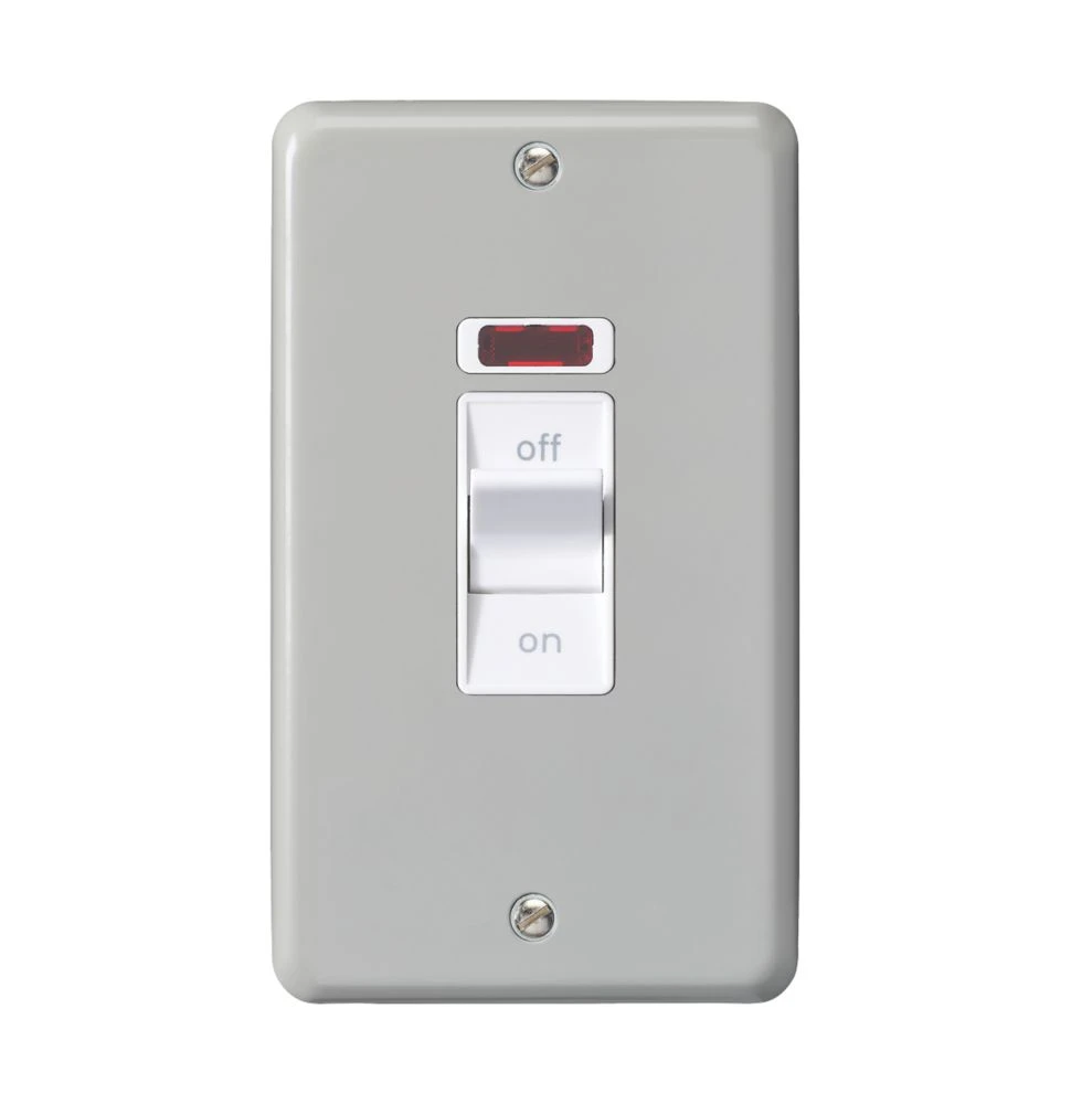 MK Albany Plus 13A 2-Gang DP Switched Plug Socket Brushed Stainless Steel With White Inserts