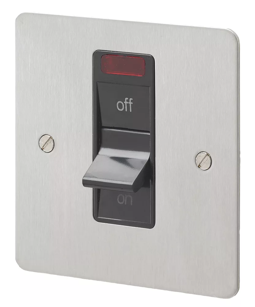 MK Albany Plus 13A 2-Gang DP Switched Plug Socket Brushed Stainless Steel With White Inserts