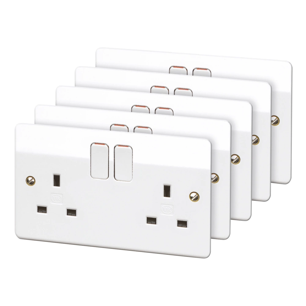 Easy to install. Double pole switched double socket with 3-pin safety shutter system. Anti-microbial, high gloss finish.