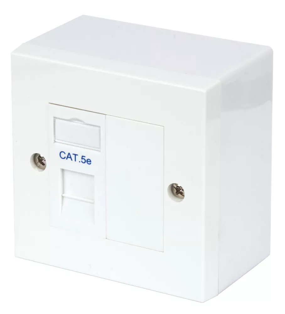Contains all the components required to install a single RJ45 surface outlet. Expandable to twin outlets.