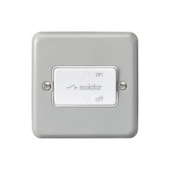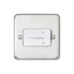 MK Contoura 10A 1-Gang 3-Pole Fan Isolator Switch Brushed Stainless Steel With White Inserts