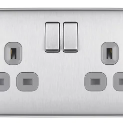 British General Nexus Metal 13A 2-Gang SP Switched Plug Socket Brushed Steel With Graphite Inserts