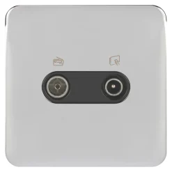 Schneider Electric Lisse Deco 1-Gang Coaxial TV / FM Socket Polished Chrome With Black Inserts
