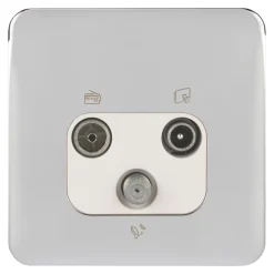 Schneider Electric Lisse Deco 1-Gang Triplex Multimedia Socket Polished Chrome With White Inserts