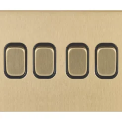 Schneider Electric Lisse Deco 10AX 4-Gang 2-Way Light Switch Satin Brass With Black Inserts