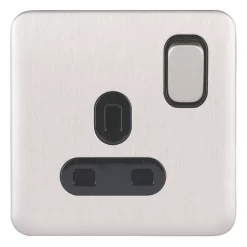 Schneider Electric Lisse Deco 13A 1-Gang DP Switched Plug Socket Polished Chrome With Black Inserts
