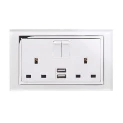 Retrotouch 13A 2-Gang DP Switched Socket + 2.1A 2-Outlet Type A USB Charger White Glass