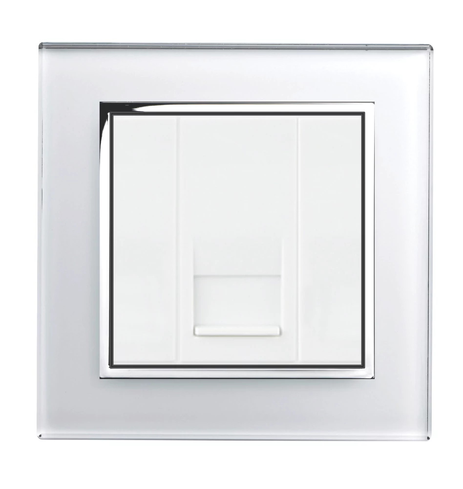 Modern, slim design master telephone socket with chrome trim, glass surround and concealed screws.