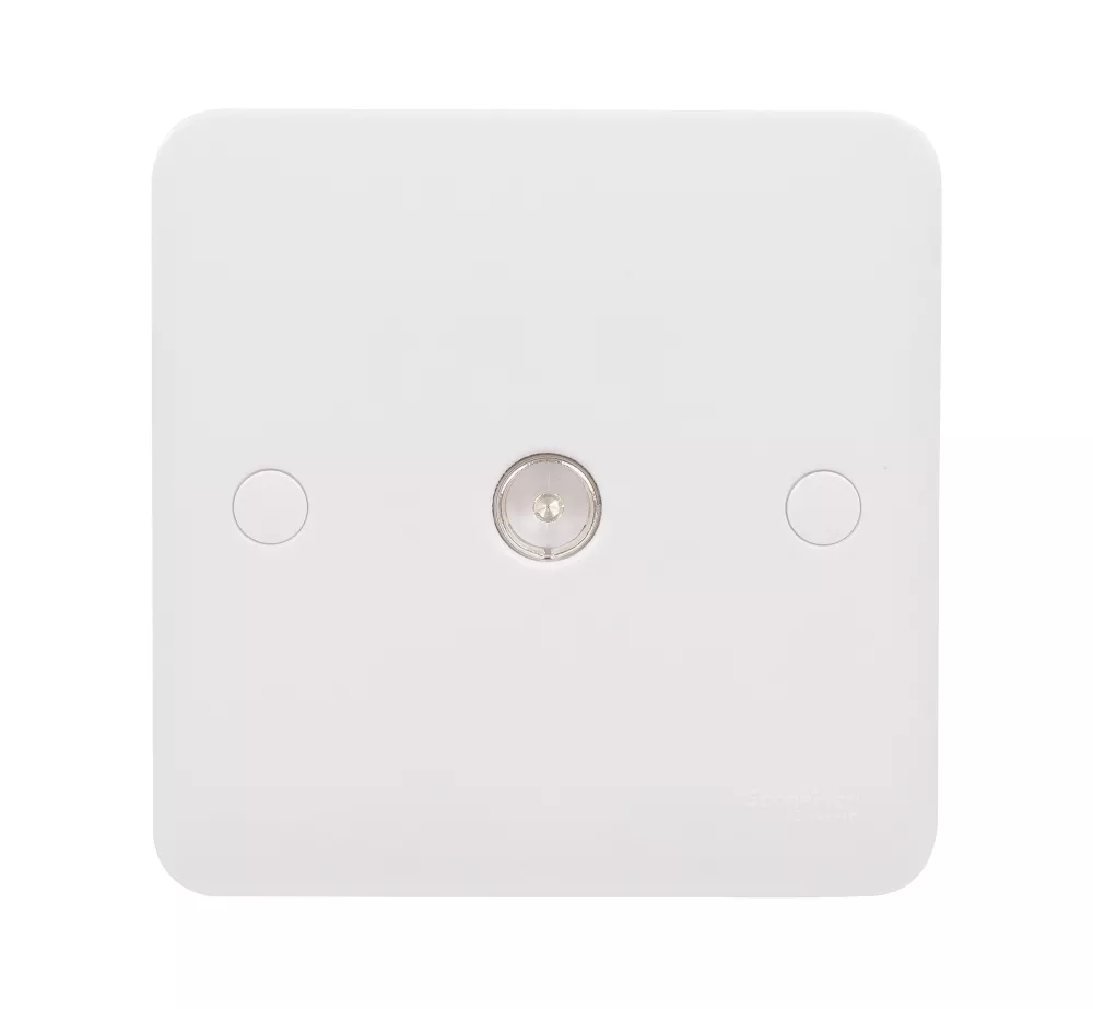 Coaxial TV-R outlet socket. Smooth, soft-curved plate profile. Made from durable, high quality urea with antimicrobial properties. Ideally suited for new constructions and refurbishment projects. Supplied with screw cap covers for a sleek finish.