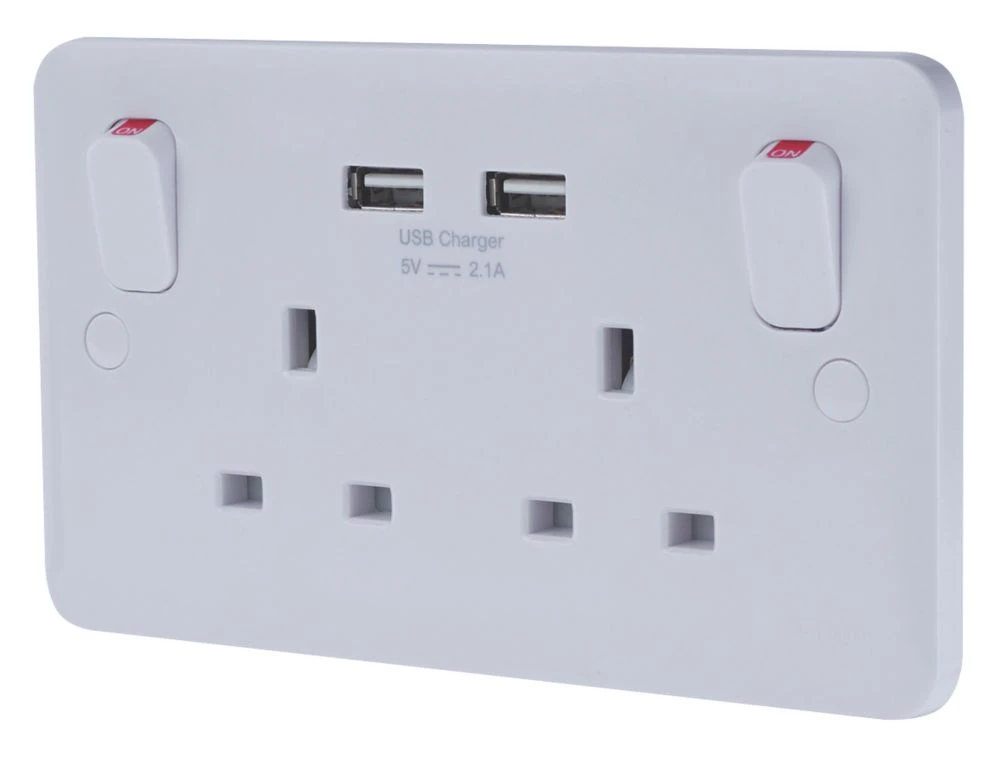 Double USB charger outlet. Smooth, soft-curved plate profile. Made from durable, high quality urea with antimicrobial properties. Ideally suited for new constructions and refurbishment projects. Supplied with screw cap covers for a sleek finish.