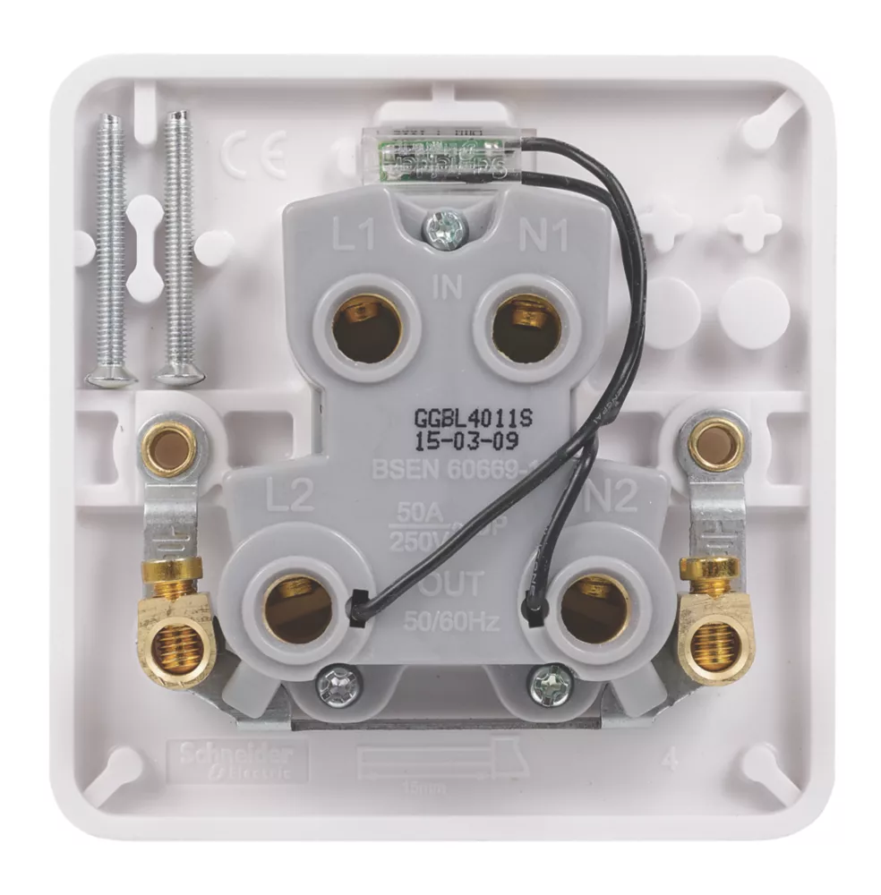 Schneider Electric Lisse 50A 1-Gang DP Cooker Switch White With LED