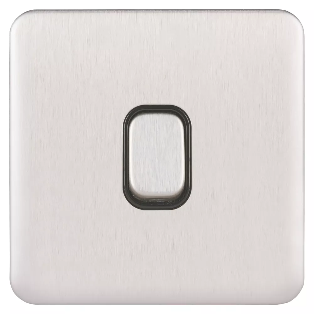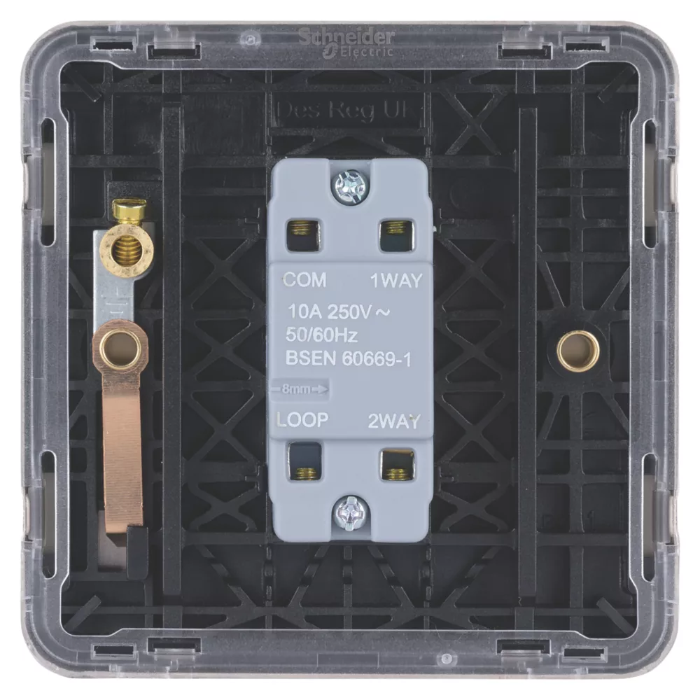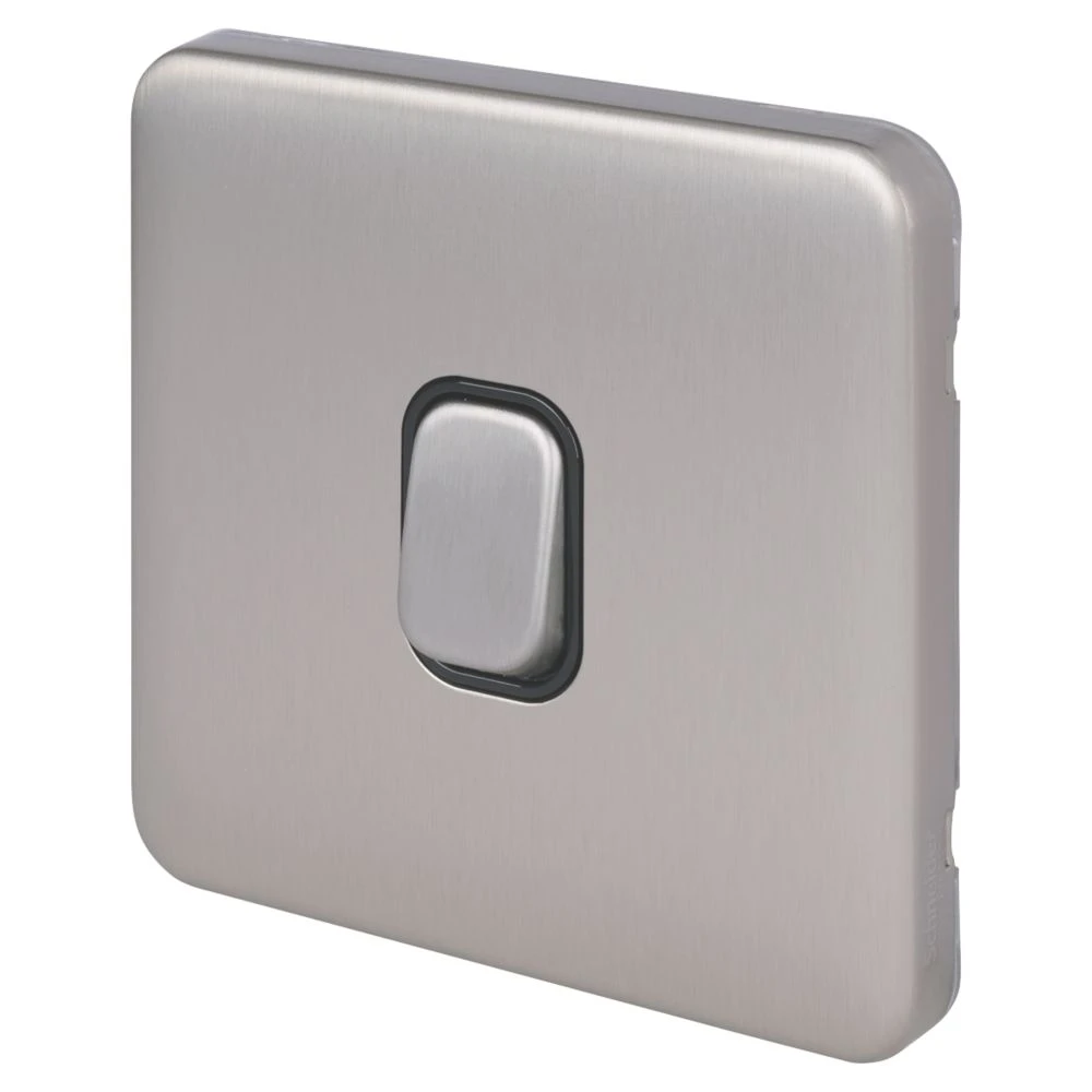 Schneider Electric Lisse Deco 10A 1-Gang 2-Way Retractive Switch Brushed Stainless Steel With Black Inserts