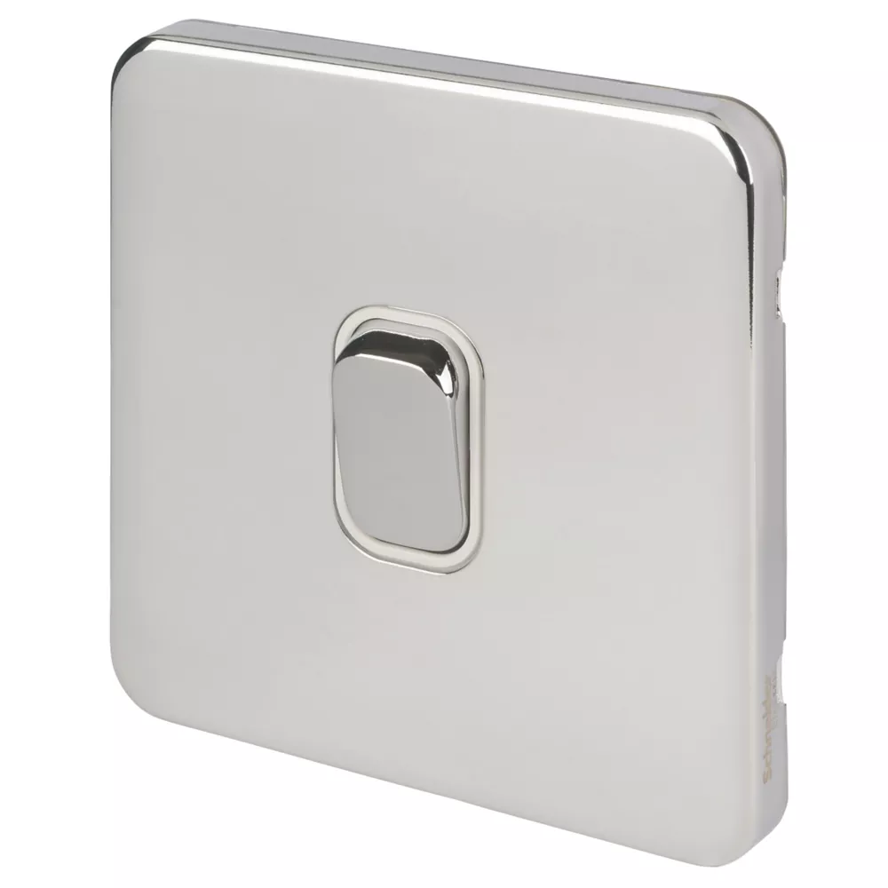Schneider Electric Lisse Deco 10AX 1-Gang 2-Way Light Switch Polished Chrome With White Inserts