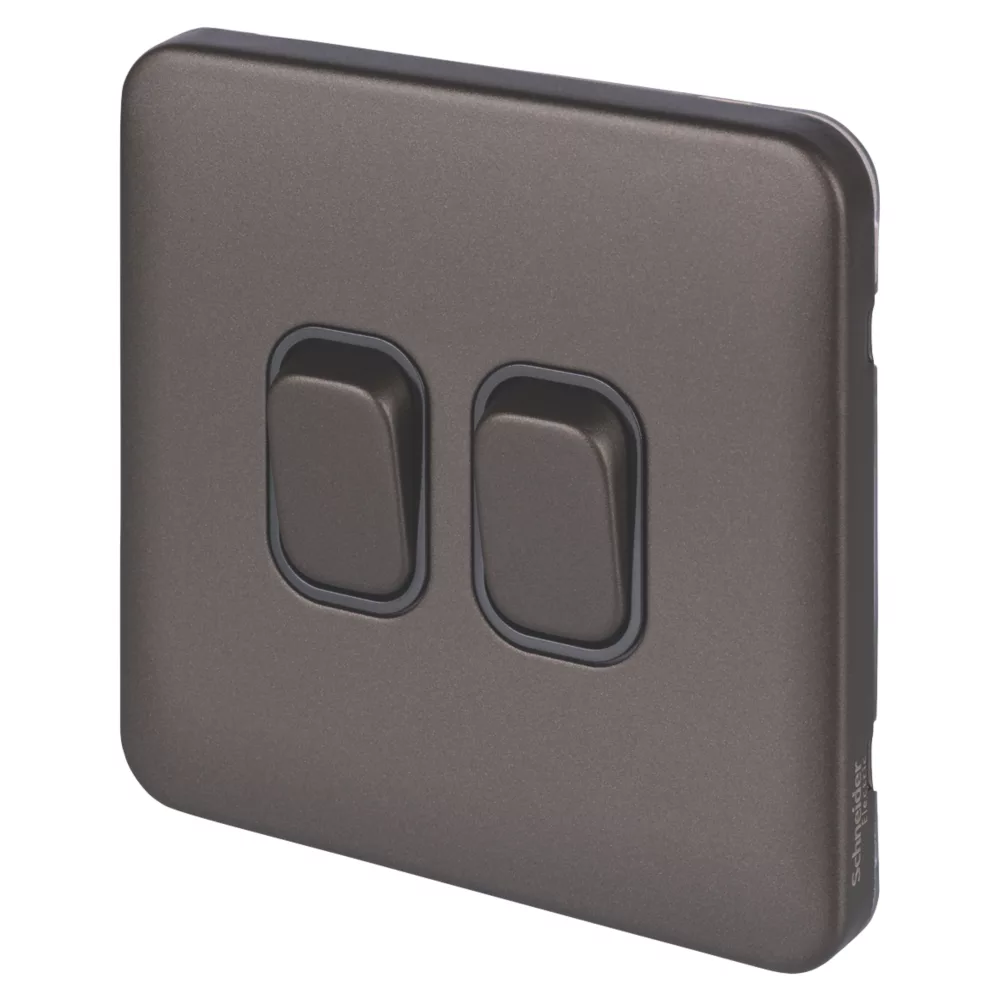 Schneider Electric Lisse Deco 10AX 2-Gang 2-Way Light Switch Mocha Bronze With Black Inserts