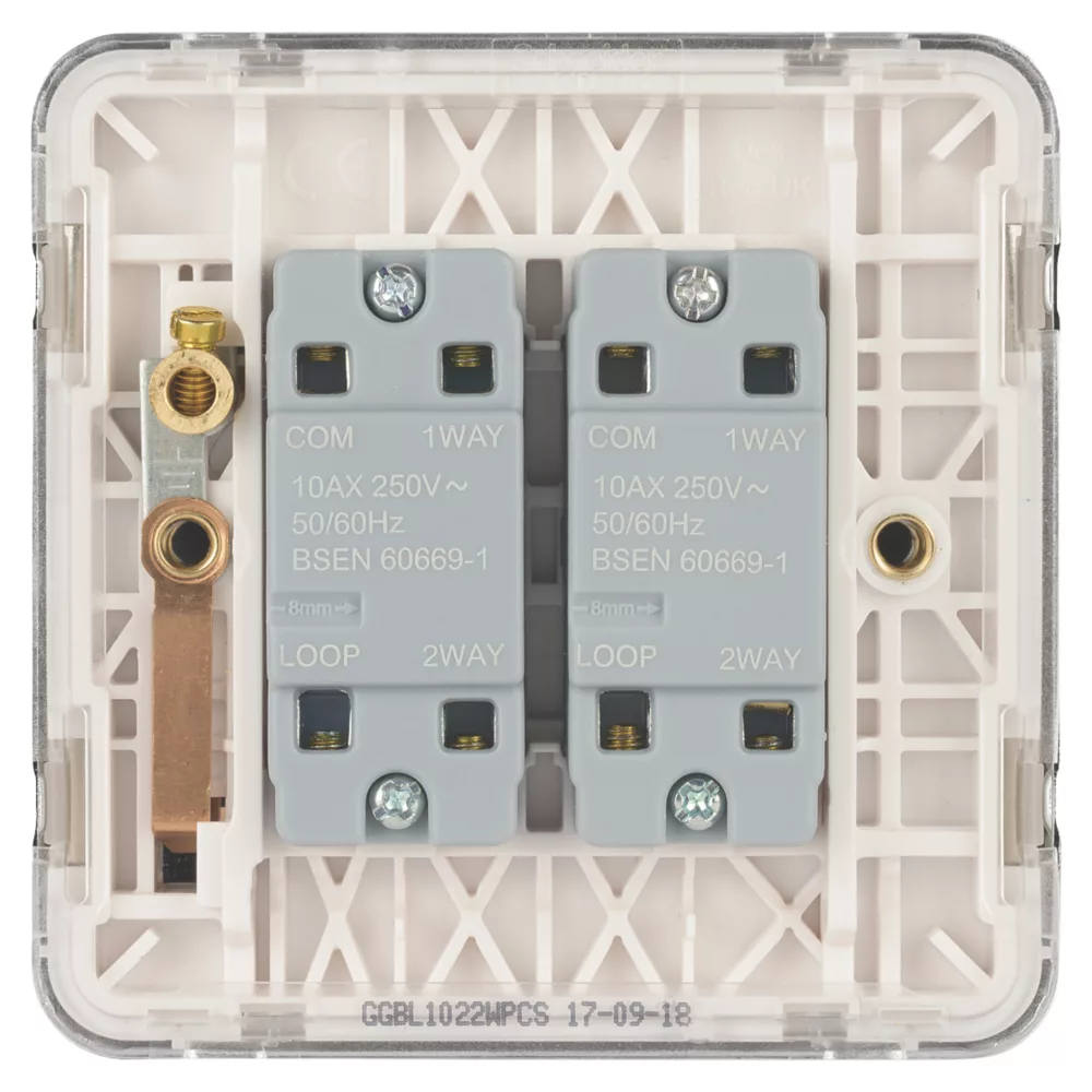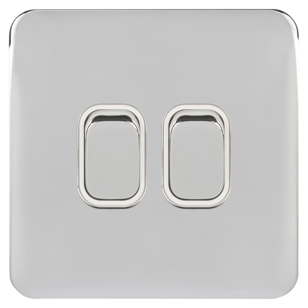Schneider Electric Lisse Deco 10AX 2-Gang 2-Way Light Switch Polished Chrome With White Inserts