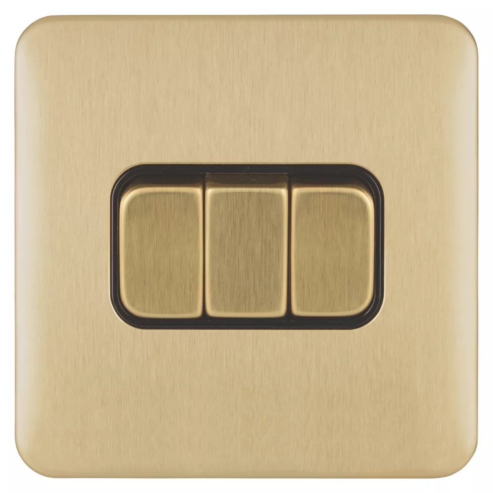 Schneider Electric Lisse Deco 10AX 3-Gang 2-Way Light Switch Satin Brass With Black Inserts