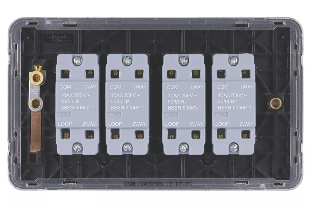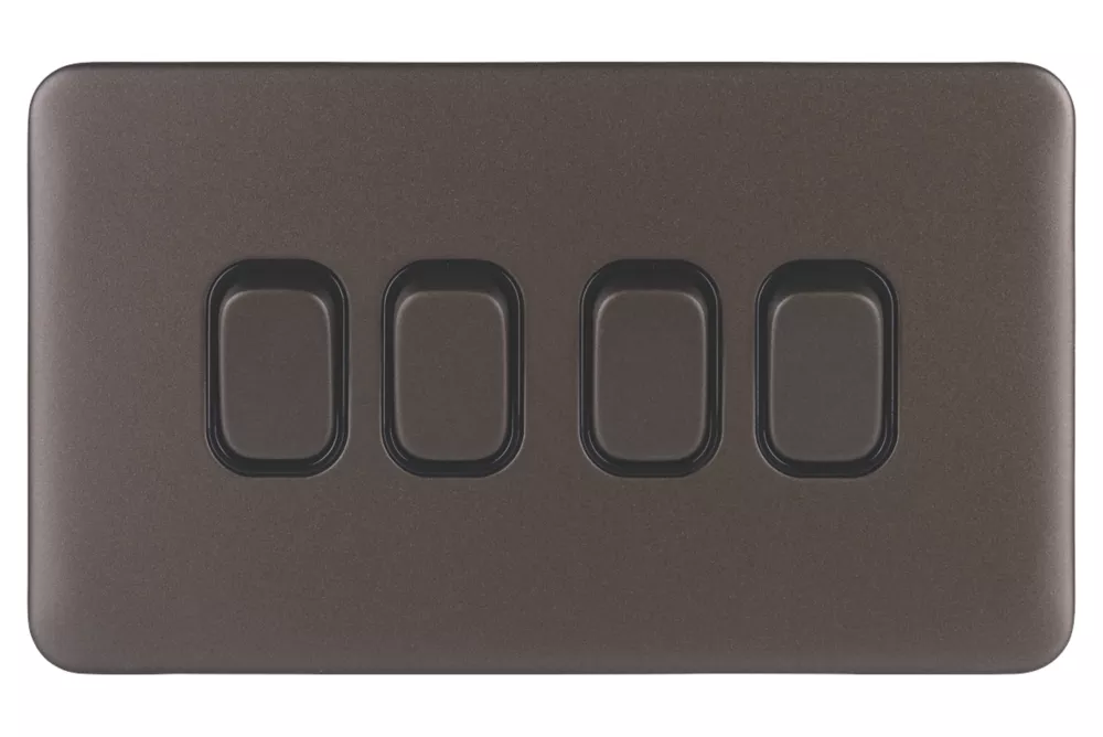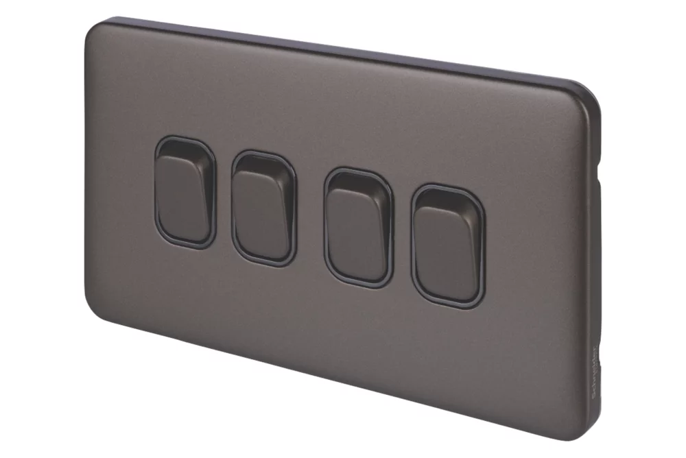 Schneider Electric Lisse Deco 10AX 4-Gang 2-Way Light Switch Mocha Bronze With Black Inserts