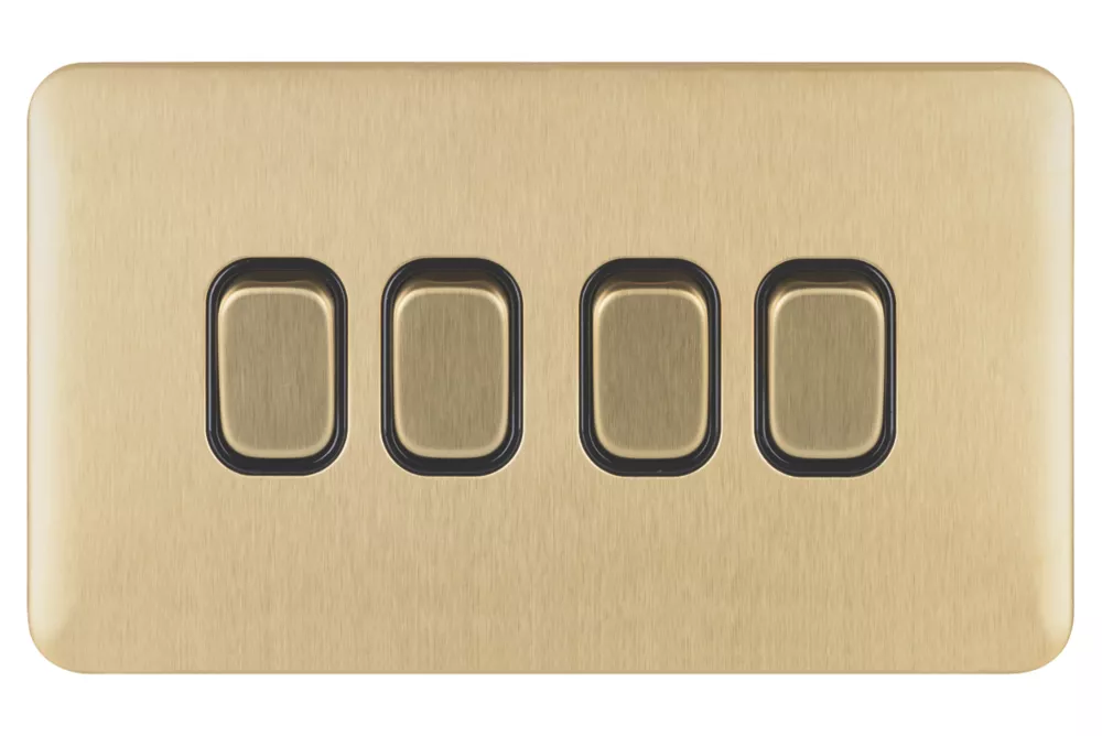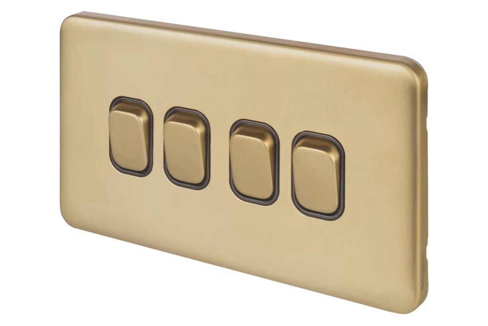 Schneider Electric Lisse Deco 10AX 4-Gang 2-Way Light Switch Satin Brass With Black Inserts