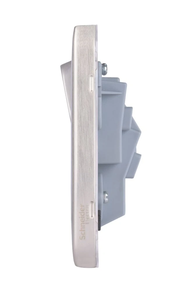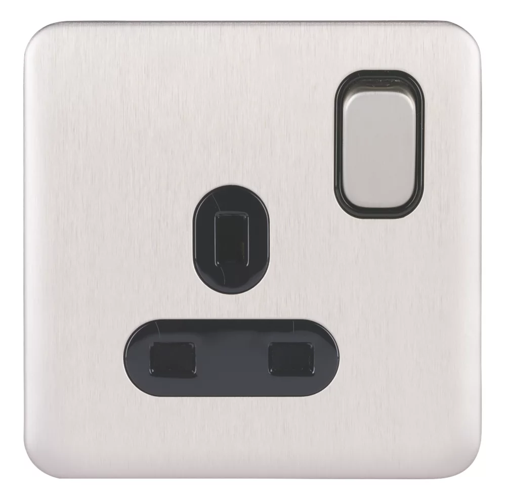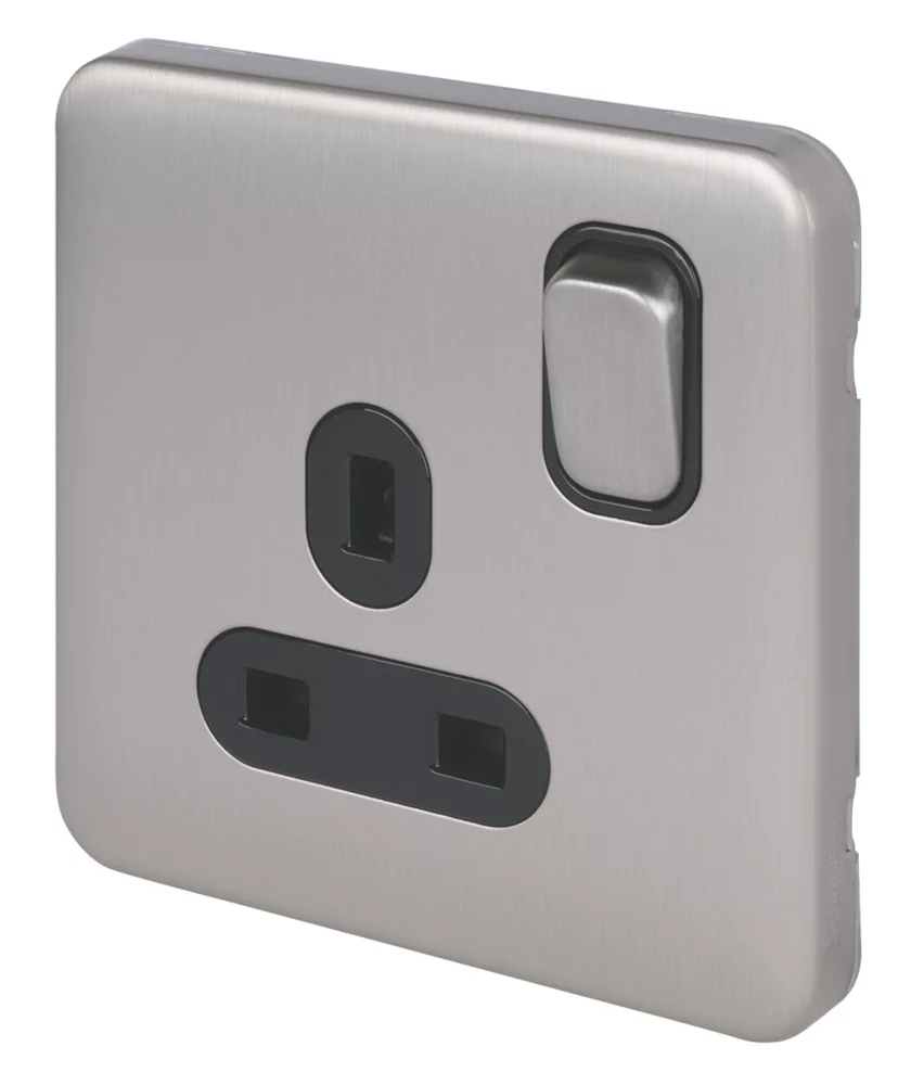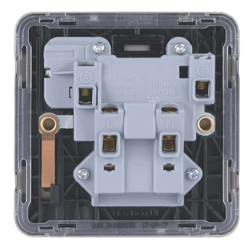Schneider Electric Lisse Deco 13A 1-Gang DP Switched Plug Socket Brushed Stainless Steel With Black Inserts